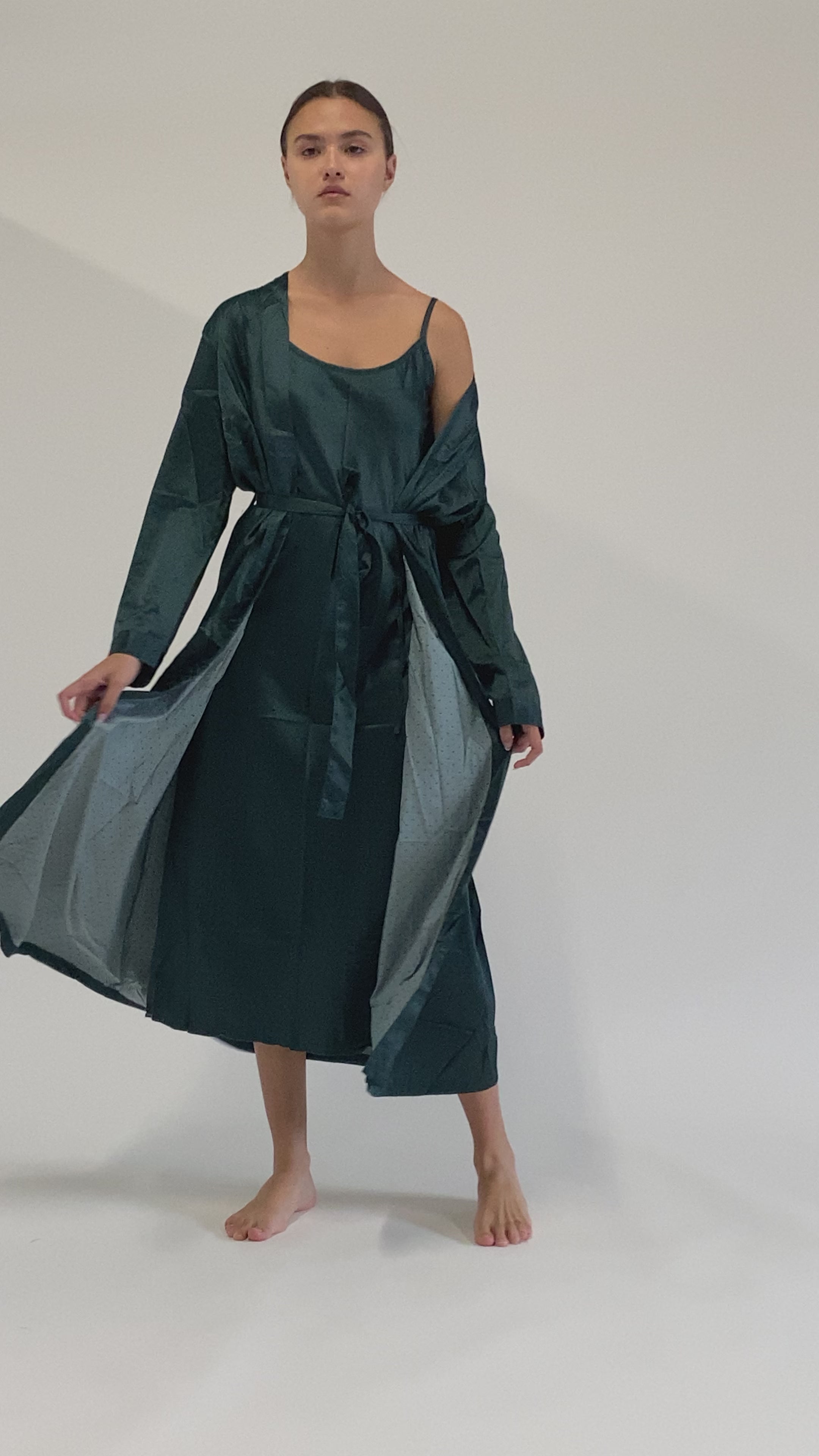 A complete dressing gown made of satin, fuchsia color with polka dots. It is an elegant chamber estate that will make you look refined even within four walls. You can combine it with the color variants of the same series to be impeccably charming even for moments of rest at home. A real elegant and refined piece of lingerie.